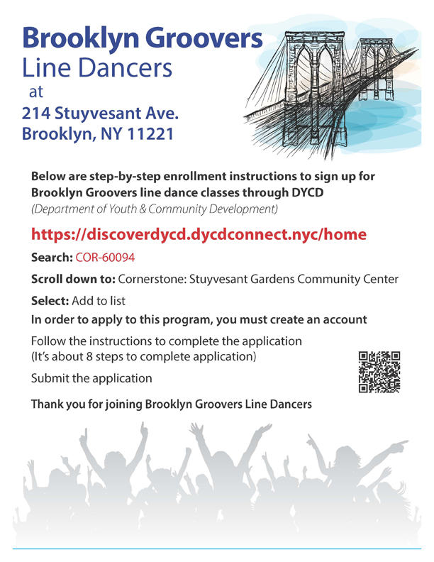 Sign up for Brooklyn Groovers line dance classes through DYCD (Department of Youth & Community Development)